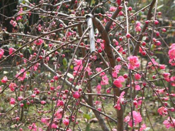垂枝桃喜光、耐寒、較耐旱耐脊、但不耐積水。宜每年修剪促生新梢,才會次年開花。修剪短截時宜留向外的側(cè)芽,新梢才易向四周垂吊。
