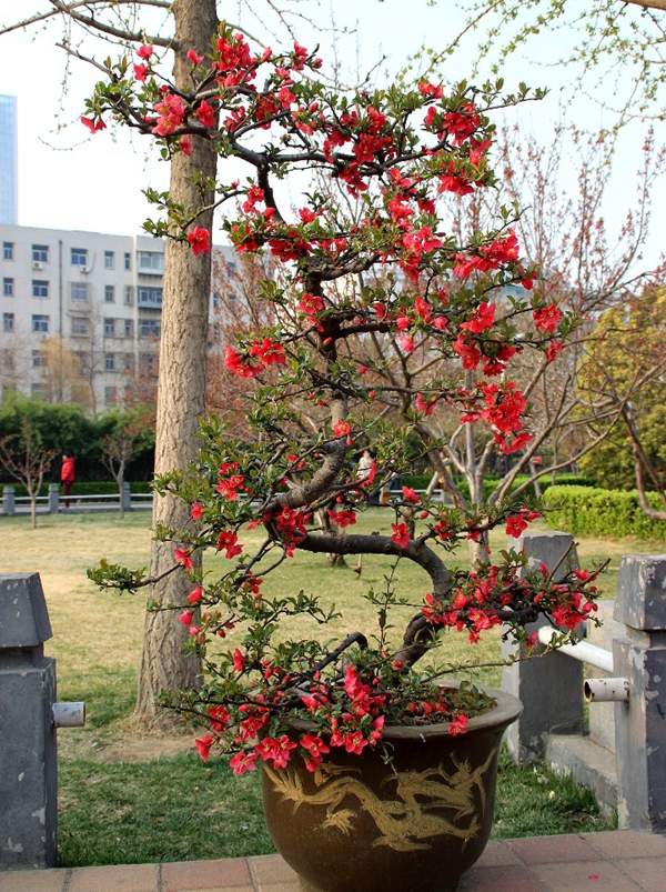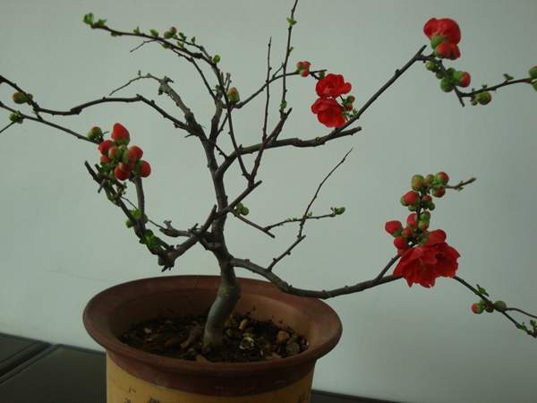 貼梗海棠盆景造型獨特,看完了這么多的盆景造型,是不是覺得太神奇了;自然的生長再加上人為巧妙的攀扎整形,一盆盆不一樣的造型就制作出來了。