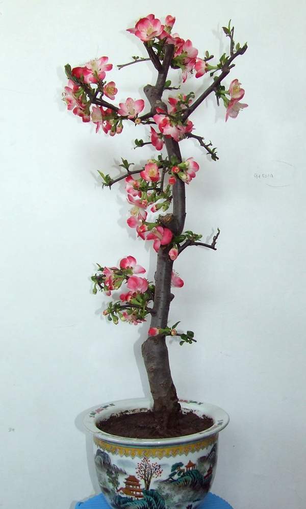 貼梗海棠它又叫作皺皮木瓜,而且還有許多的叫法,是落葉灌木的一種,它在園林綠化上屬于觀花、觀果的優(yōu)良品種;特別是在花期的時候,滿樹花朵非常的艷麗,顏色多樣;貼梗海棠不但在園林效應(yīng)上有它的風(fēng)采,而且它的果實還可以吃,果實營養(yǎng)豐富含維生素多,在醫(yī)學(xué)上也有它的獨特功效;貼梗海棠在綠化上可以栽種在景區(qū)、道路兩邊、庭院等地方;還可以在一些綠化樹中栽種一兩棵貼梗海棠,可以起到點綴的效果,成片的栽種也有不一樣的觀賞效果;它不僅可以地栽也可以制作為盆景,造型多種,常被放置在客廳、花臺、陽臺、門庭邊都可以,下面我們就來欣賞一下它的各種造型盆景吧: